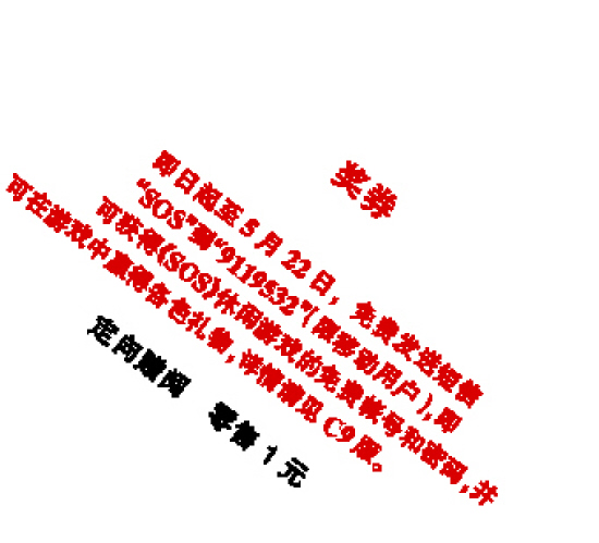 即日起至5月22日,免费发送短信“SOS”到“9119532”(限移动用户),即可获得《SOS》休闲游戏的免费帐号和密码,并可在游戏中赢得各色礼物,详情请见C9版。