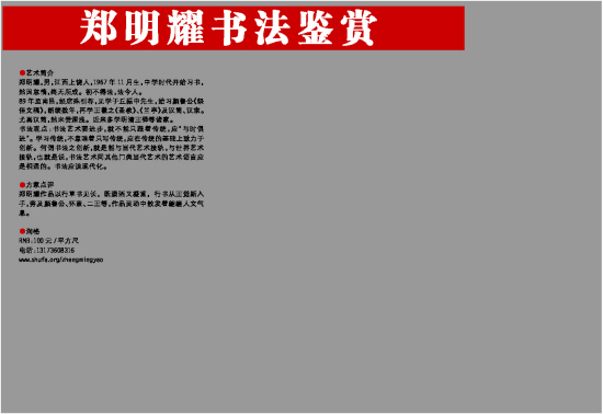 郑明耀,男,江西上饶人,1967年11月生,中学时代开始习书,然因怠惰,终无所成。初不得法,法今人。