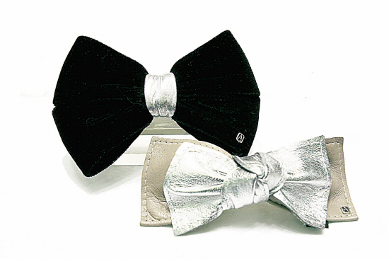 从简洁的蝴蝶结会联想到白衬衫,这种流行了不知道多久的款式,加上绒布和皮草的质感,用来固定后侧的头发,在造型上显得干净利落。