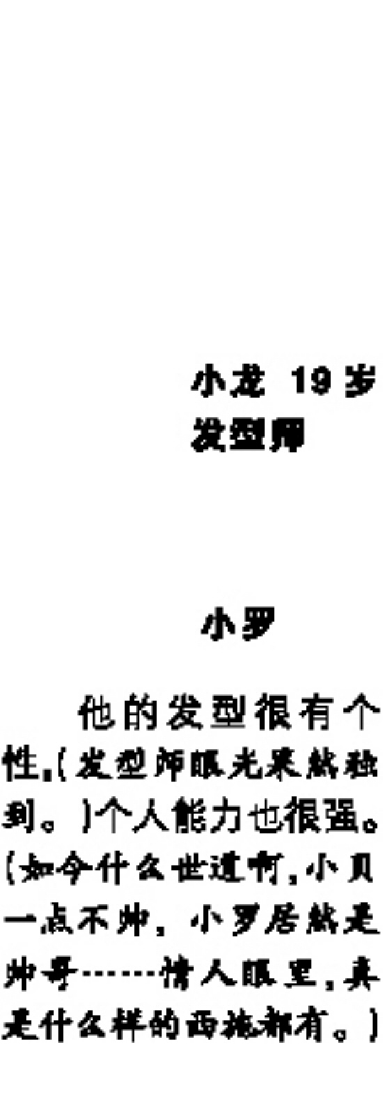 他的发型很有个性,(发型师眼光果然独到。)个人能力也很强。(如今什么世道啊,小贝一点不帅,小罗居然是帅哥……情人眼里,真是什么样的西施都有。)