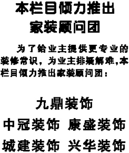 为了给业主提供更专业的装修常识,为业主排疑解难,本栏目倾力推出家装顾问团:
