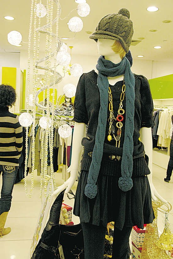 黑色是永恒的经典,黑色的中袖毛衣,黑色的短裙,加上一条明晃晃的金属链子,够酷了吧。