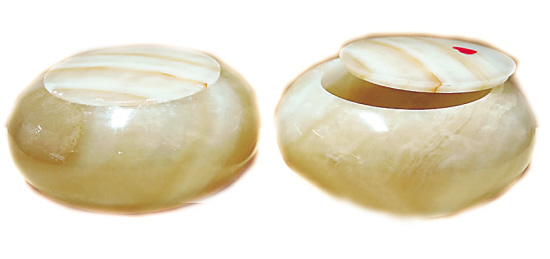 大理石围棋盒,本来很完美的,现在有个盖子上有一点点的缺口,就是左边那个,可能是拿的时候不小心碰的,基本不影响外观。