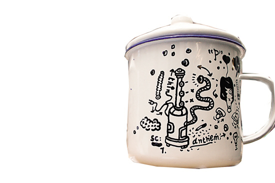 老底子先进工作者才能得到的搪瓷杯,现在画上些个性图案。