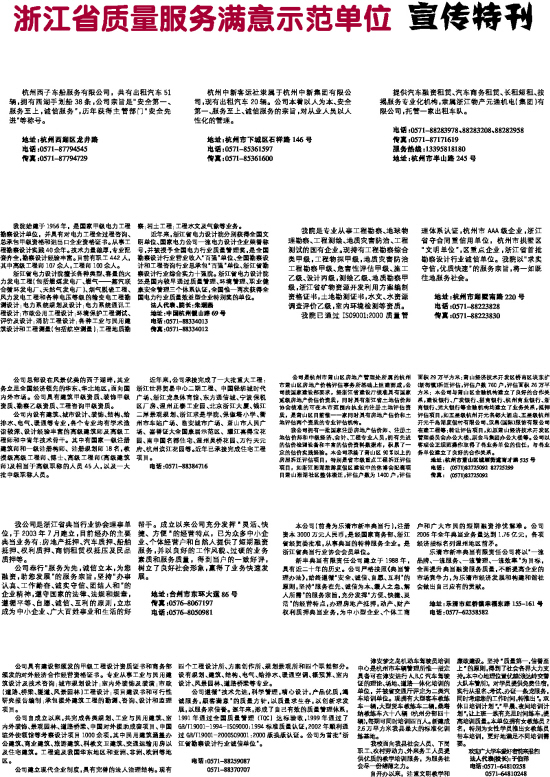 我院已通过ISO9001:2000质量管理体系认证,杭州市AAA级企业,浙江省守合同重信用单位,杭州市拱墅区“文明单位”,区重点企业,浙江省首批勘察设计行业诚信单位。我院以“求实守信,优质快速”的服务宗旨,将一如既往地服务社会。