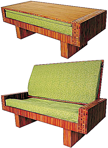 现代家具中,美观、实用、多功能总是大受欢迎。这只手工制竹子合成板材大茶几,厚重沉稳,来客时掀起台面,便是一只宽大、温软、舒适的长沙发了。款式经典时尚,功能实用且节约空间。