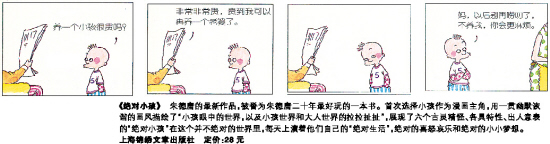 《绝对小孩》 朱德庸的最新作品,被誉为朱德庸二十年最好玩的一本书。首次选择小孩作为漫画主角,用一贯幽默诙谐的画风描绘了“小孩眼中的世界,以及小孩世界和大人世界的拉拉扯扯”,展现了六个古灵精怪、各具特性、出人意表的“绝对小孩”在这个并不绝对的世界里,每天上演着他们自己的“绝对生活”,绝对的喜怒哀乐和绝对的小小梦想。