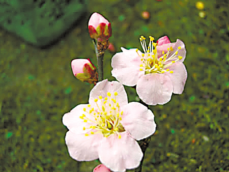 有的江梅品种花瓣较小而花丝较长,可形成长须的优美花型。