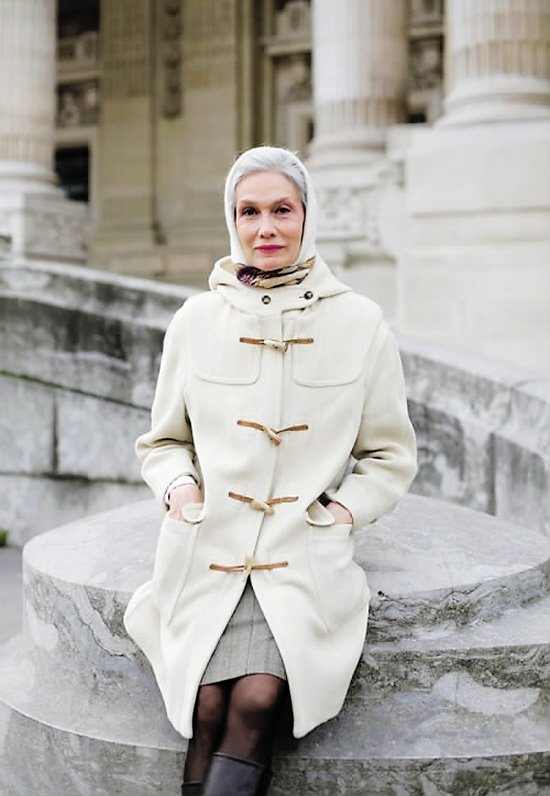 1非常有气质的老奶奶,银色的发丝,双排扣的白色大衣,还有一双极为性感的黑色透视袜。最画龙点睛的是她桃红色的唇膏,好有精神好fashion的老太太。