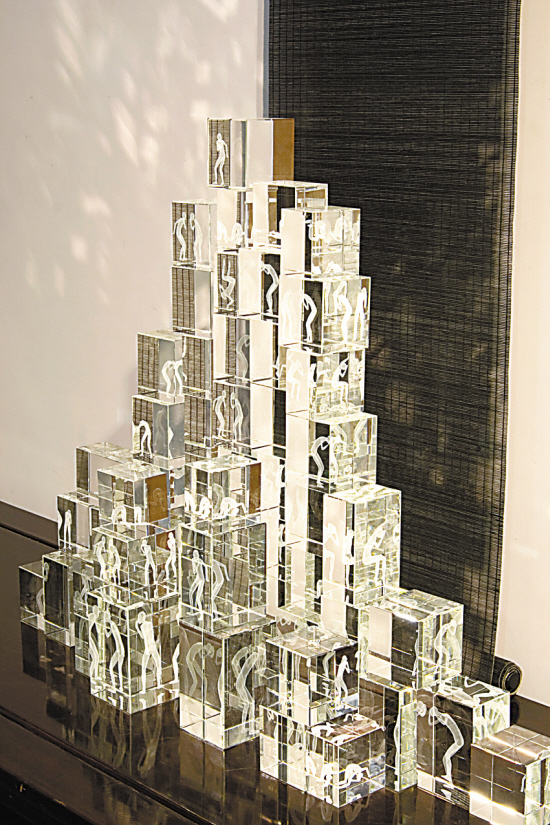 摆在二楼最明显位置的就是这个晶莹剔透的作品。每个方块中都有一个人形做着一个动作,让人感慨它的细致。