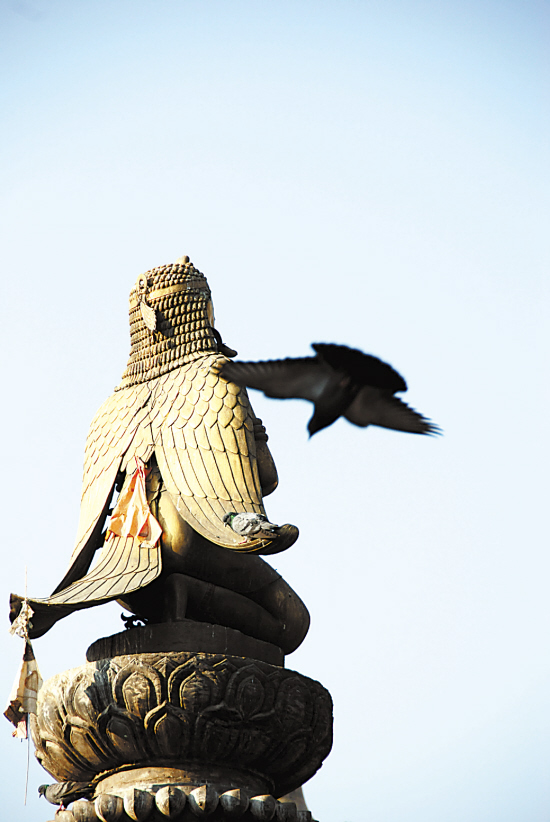 杜巴广场最高处的雕像,从下往上看,充满圣洁