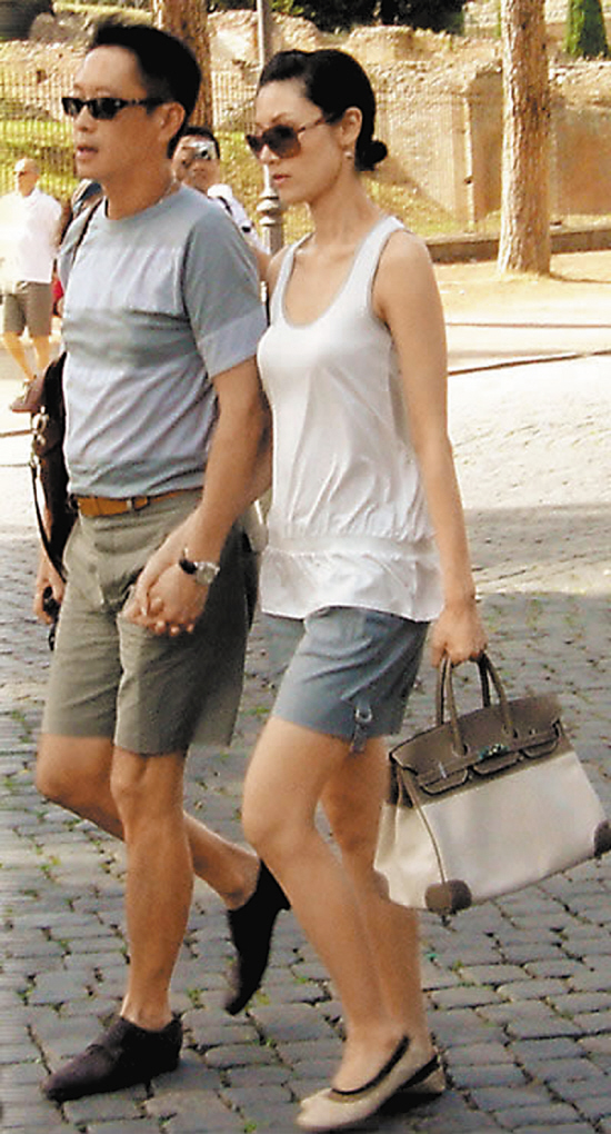 看起来特别随意清爽的休闲装扮,包包和鞋子的颜色搭配非常有整体感。两人在服装色彩呼应上可是毫不含糊,可谓你中有我,我中有你。