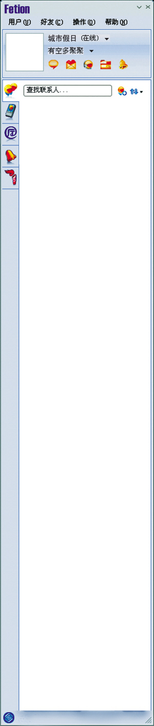 除具备聊天软件的基本功能外,飞信可以通过PC、手机、WAP等多种终端登录,实现PC和手机间的无缝即时互通,保证客户能够实现永不离线的状态;同时,飞信所提供的好友手机短信免费发、语音群聊超低资费、手机电脑文件互传等更多强大功能,令客户在使用过程中产生更加完美的产品体验;飞信能够满足客户以匿名形式进行文字和语音的沟通需求,在真正意义上为使用者创造了一个不受约束、不受限制、安全沟通和交流的通讯平台。