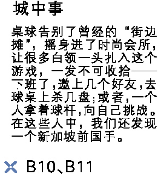 桌球告别了曾经的“街边摊”,摇身进了时尚会所,让很多白领一头扎入这个游戏,一发不可收拾——下班了,邀上几个好友,去球桌上杀几盘;或者,一个人拿着球杆,向自己挑战。