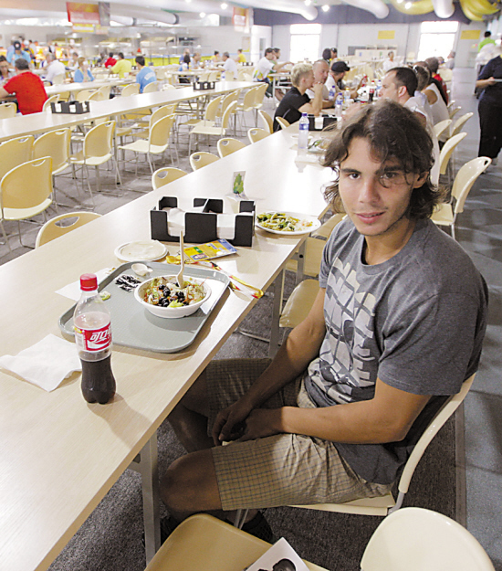 凭借超强的实力和俊朗的外表,西班牙网球天才少年纳达尔在中国拥有一大批狂热粉丝。可能他实在太受欢迎了,纳达尔都不敢和队友们一起出现了,一个人偷偷吃午餐,相信中国美食可以让他好好享受一番。
