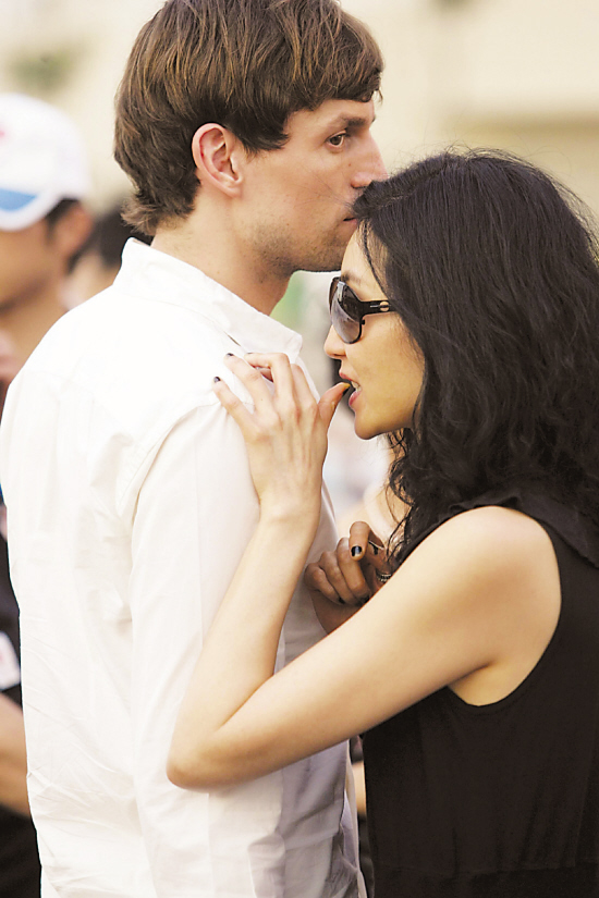 2008年8月16日,张曼玉与德国籍男友Ole在鸟巢安检口依偎相拥。