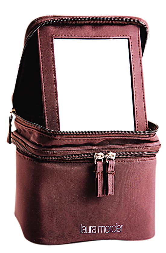 这是Laura Mercier的公关所送给她的化妆袋,大小适中可存放大量的化妆品,可放置不同的化妆扫、眼线笔、眼影扫等,尼龙质料非常轻身,随袋附送化妆镜,随时补妆都非常方便。