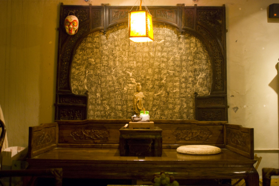 4 徐浩坤工作室会客厅正中的架子床屏风,一次去丽水的朋友家喝喜酒的时候,从那里一个废品回收站的角落里翻出来的,35元。
