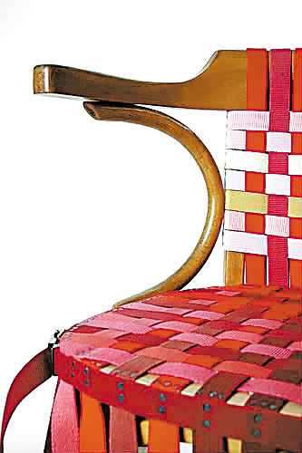 越来越多的设计师大做椅子的文章。看看这款用彩色皮带编制的椅子吧,你以为这只不过是几根色彩鲜艳的皮带,可是一编,它就是一把椅子。别忘记试试是不是坐着舒服,这一定会成为你居室中的亮点。