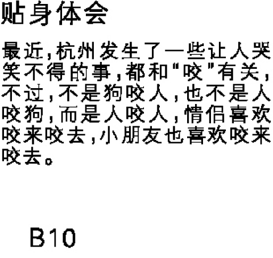 最近,杭州发生了一些让人哭笑不得的事,都和“咬”有关,不过,不是狗咬人,也不是人咬狗,而是人咬人,情侣喜欢咬来咬去,小朋友也喜欢咬来咬去。