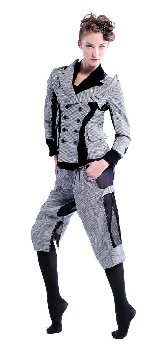 灰黑色格纹图案穿洞西裤 约5,200港币