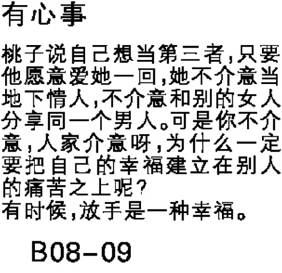 桃子说自己想当第三者,只要他愿意爱她一回,她不介意当地下情人,不介意和别的女人分享同一个男人。可是你不介意,人家介意呀,为什么一定要把自己的幸福建立在别人的痛苦之上呢?