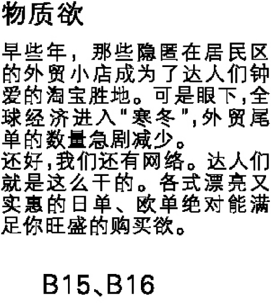 早些年,那些隐匿在居民区的外贸小店成为了达人们钟爱的淘宝胜地。可是眼下,全球经济进入“寒冬”,外贸尾单的数量急剧减少。
