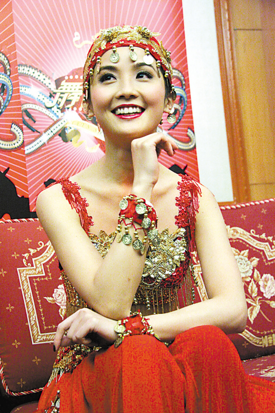 阿SA12月8日现身上海参加东方卫视的全国版《舞林大会》第六期录制,她作为表演嘉宾跳了性感的印度舞。一身铜钱装扮有些雷人。