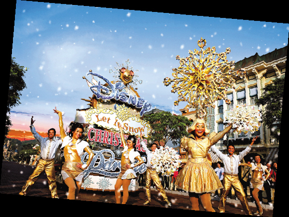 本身已是童话世界的迪士尼乐园,在这个充满欢欣的圣诞节,多添了几分梦幻指数。今年的“迪士尼雪亮圣诞之华丽王国”除了有去年口碑甚佳的“雪映舞动巡游”,还加了新环节“星闪皇家舞会”和“米奇圣诞屋”,加上美国小镇大街上的飘雪、灯饰和弥漫四周的姜饼香气,变得非常“圣诞”。