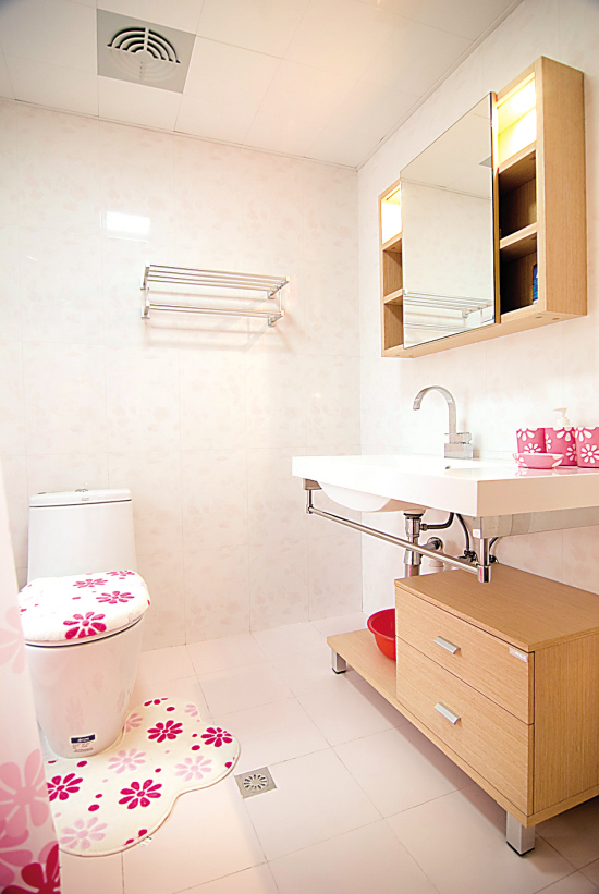 6、7. 卫生间和卧室都用上了的粉色花朵。