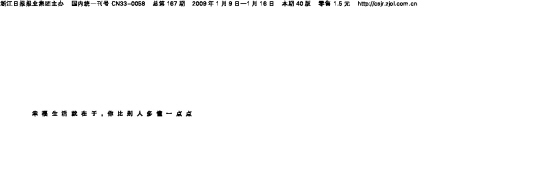 浙江日报报业集团主办 国内统一刊号 CN33-0058 总第167期 2009年1月9日—1月16日 本期40版 零售 1.5元 http://csjr.zjol.com.cn