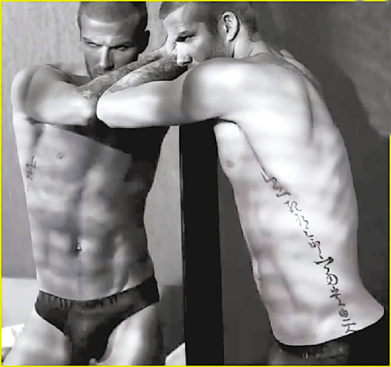 贝克汉姆为阿玛尼内衣拍摄的新一辑广告照曝光。这次他秀了一下身上的中文纹身。上书:“生死有命,富贵由天”。