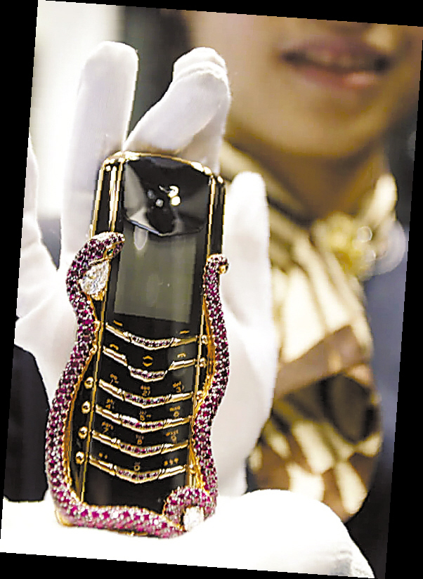 功能:据说这款手机上镶嵌了近500颗红宝石、翡翠等,手机屏幕表面采用的是蓝宝石水晶,全球才8部。