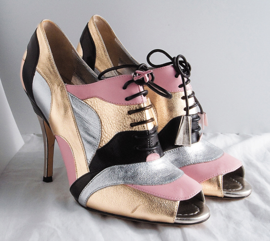 浅金、浅银、黑、粉红色蕾丝高跟鞋