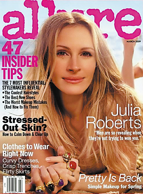 茱莉亚·罗伯茨登上了《Allure》杂志3月号的封面。茱莉亚本来已专心在家相夫教子,这次是为了宣传自己即将上映的电影《口是心非》而再次出山。《口是心非》讲述了一对分别是两家竞争激烈公司商业间谍的恋人,最终联合起来策划出周密计划骗过公司偷取一件价值不菲的产品。电影将于3月在全美上映。