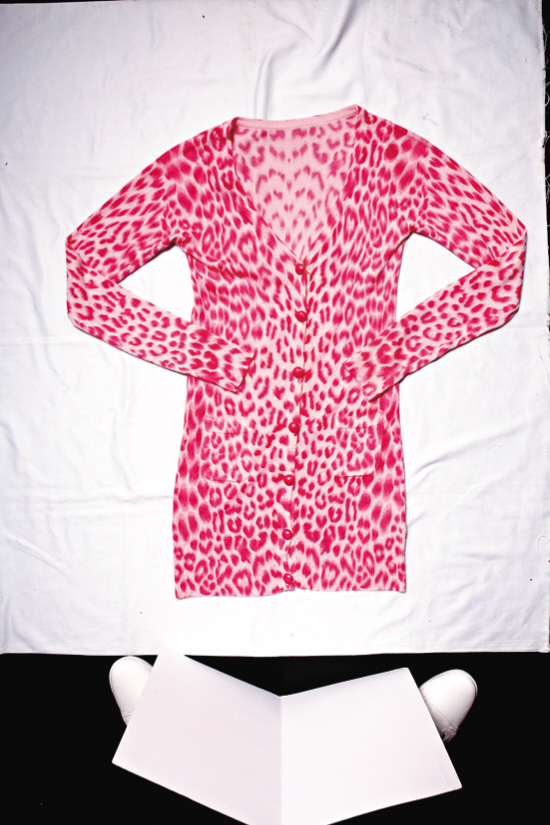 萤光粉红色豹纹长款开衫,豹纹图案够闪亮够张扬!