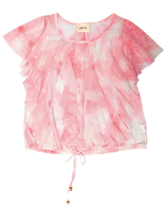 粉红色扎染网布上衣